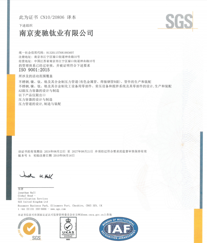ISO 9001 质量体系认证